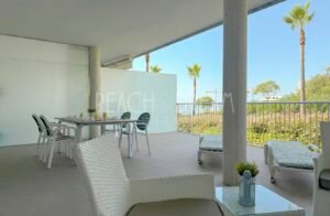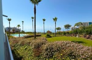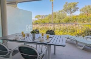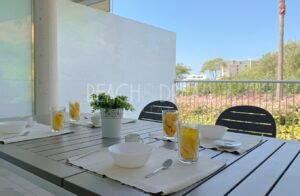 Apartamento de 2 dormitorios, 2 baños, salón, cocina y terraza, cuenta con una piscina comunitaria y dos plazas de garaje privadas.